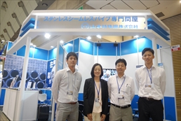 弊社ブースでは在庫・製作・加工品の三本柱のもとSUS329J4Lをはじめとする二相系ステンレス鋼管や各種加工品、配管用、機械構造用、BAパイプなどを展示いたしました。